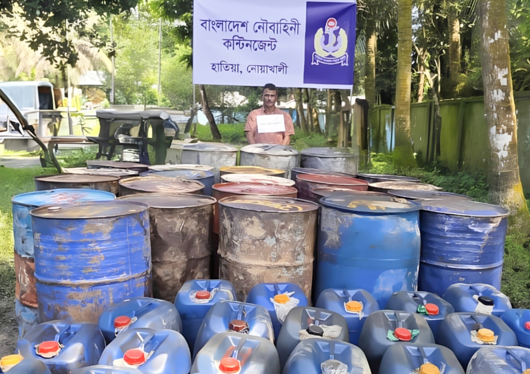 হাতিয়ায় বিপুল পরিমাণ জ্বালানি তেলসহ ১  চোরাচালানিকে আটক করেছে নৌবাহিনী