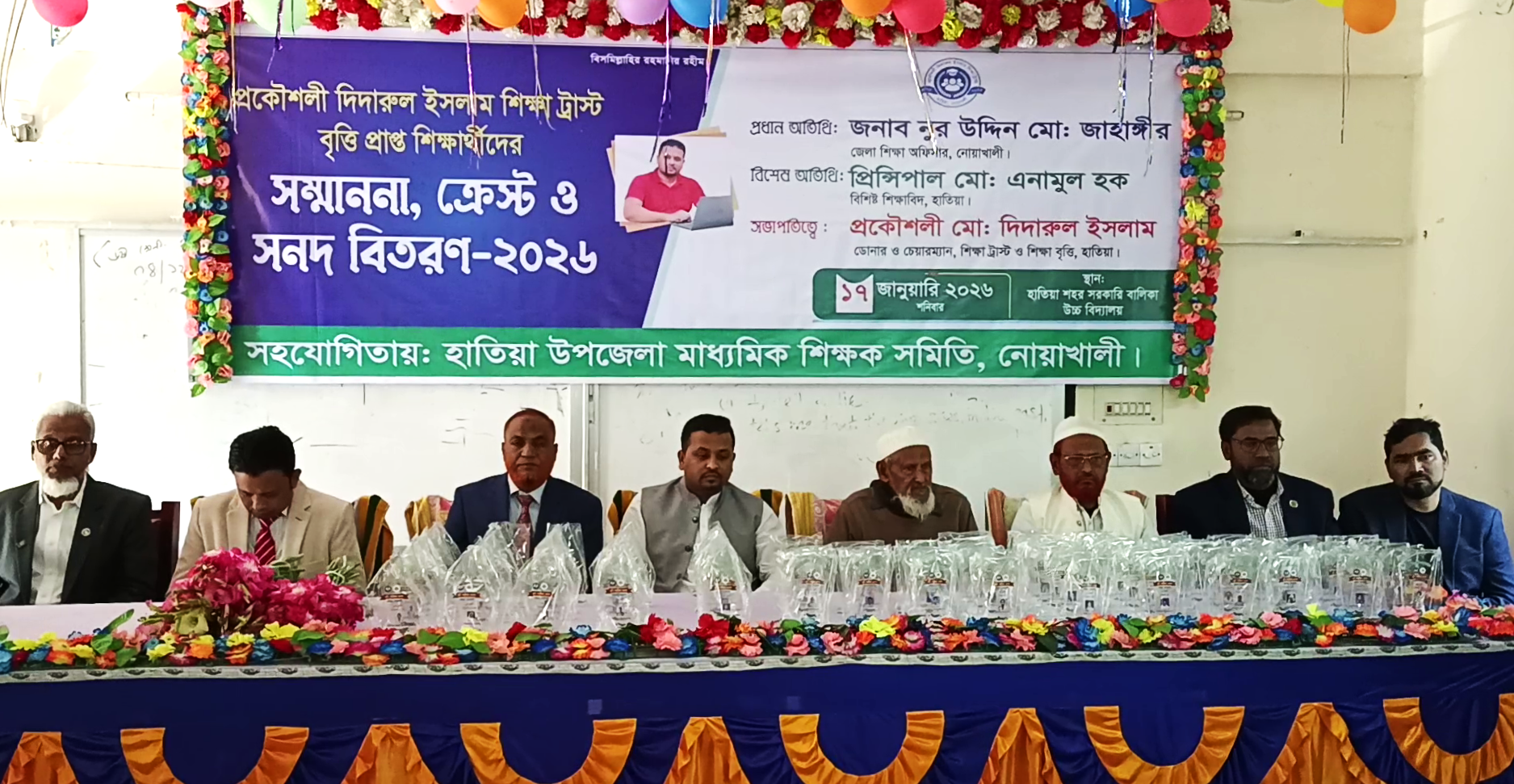 বিএন নিউজঃ নোয়াখালীর হাতিয়ায় প্রকৌশলী দিদারুল ইসলাম শিক্ষা ট্রাস্ট বৃত্তি পরীক্ষায় কৃতি শিক্ষার্থীদের সংবর্ধনা দেওয়া হয়েছে। শনিবার দুপুরে প্রকৌশলী দিদারুল